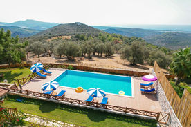 Set on a 25-decare olive grove, the villa boasts a serene atmosphere and stunning sea vistas. Surrounded by lush greenery, it provides a tranquil escape with nature views.