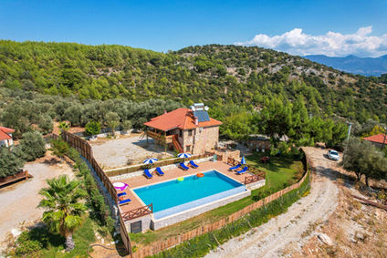 Nestled in Kalkan's Karadere, Secret Haven Villa offers stunning views of Patara Beach, preserving its original texture with stone and wood. Set amidst lush greenery on a 25-decare olive grove, it caters to holidaymakers and conservative families seeking peace.